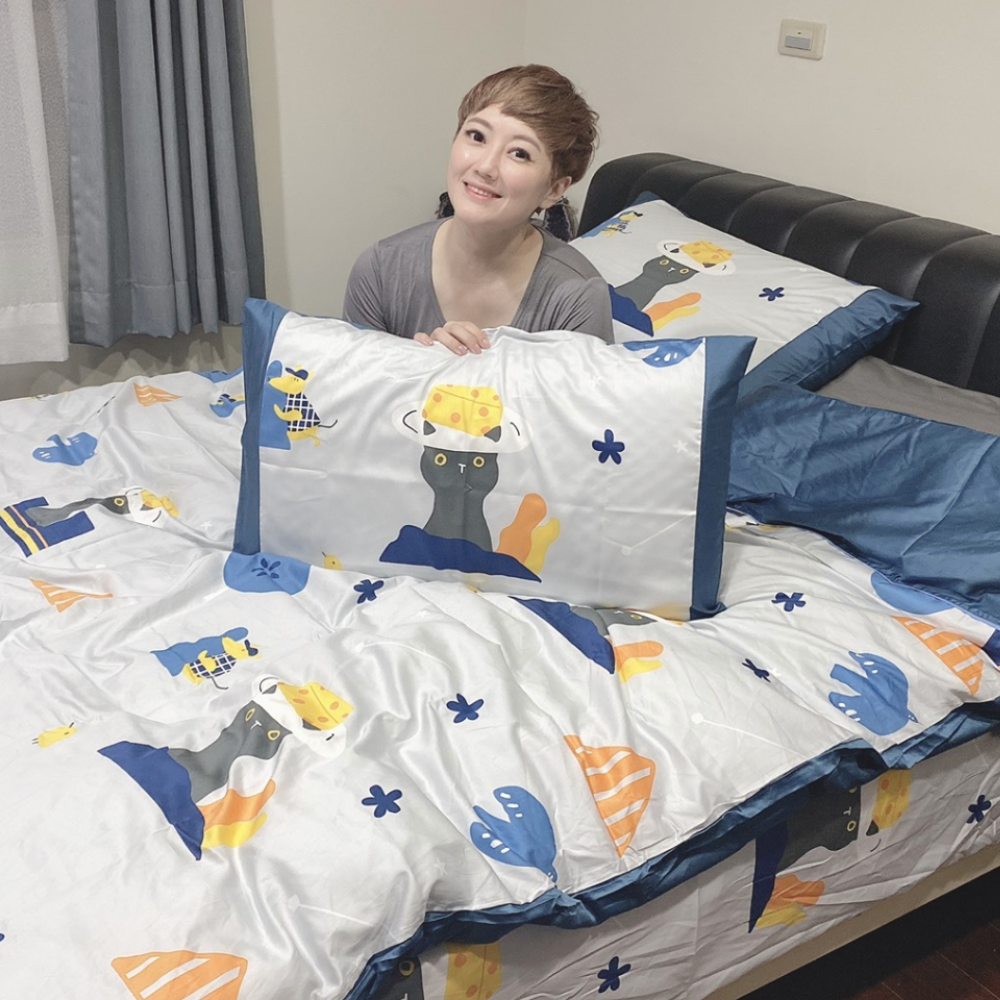 很喜歡台灣製造的【棉床本舖】,高質感「精梳棉」溫柔親膚,更能夜夜好眠! 我挑的這款《喵星球》不但擁有SGS認證,還是插畫家獨家聯名款,是外面找不到的超美花色,光看心情就美麗起來了!