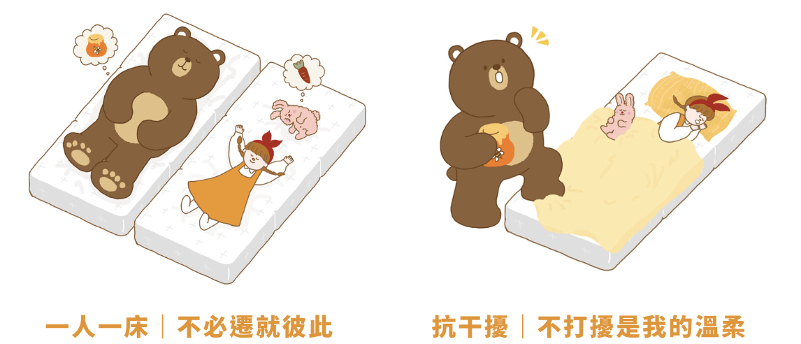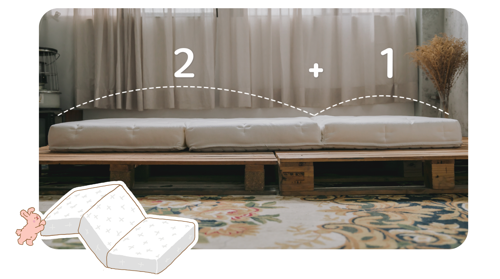 (擺放方向:床頭2床尾1,睡眠時床墊溝縫位在下半身)