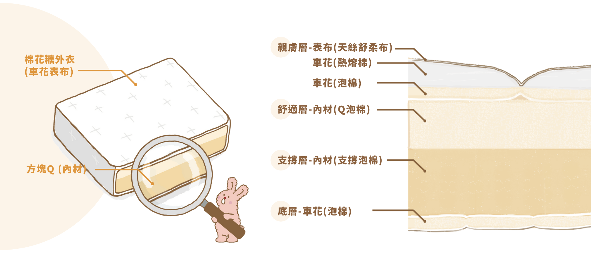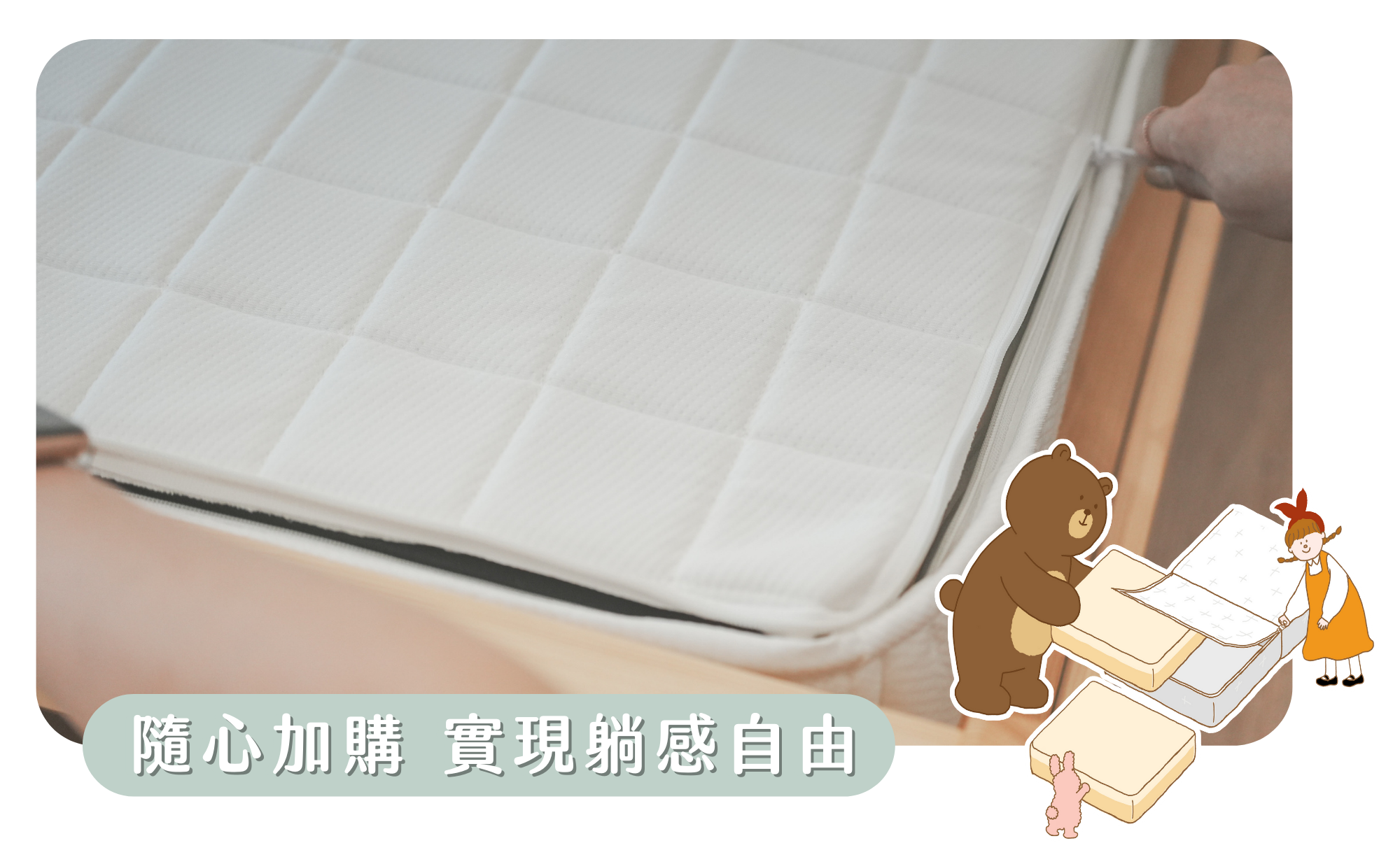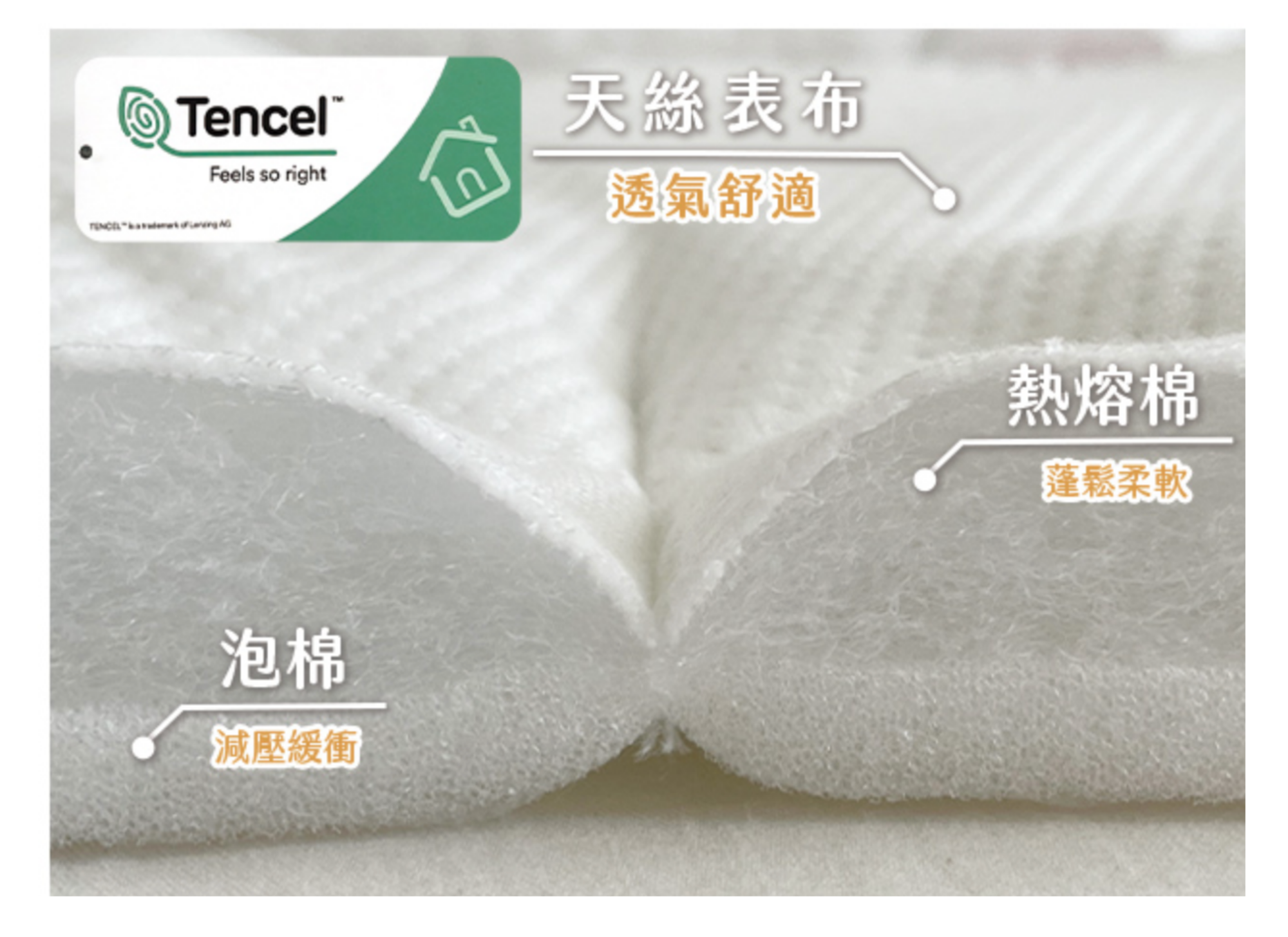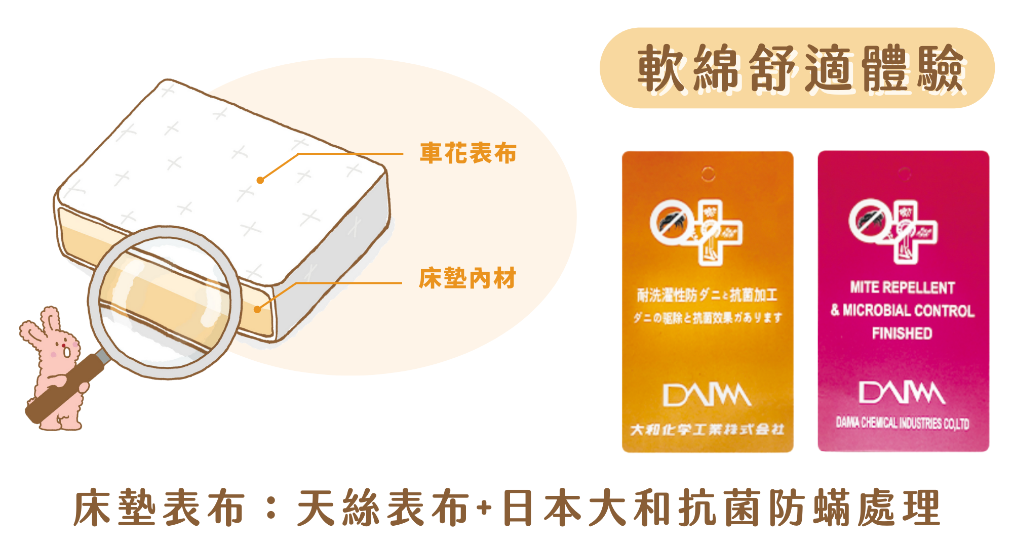 每一床皆隨貨送保潔墊,試躺時可拿出來使用