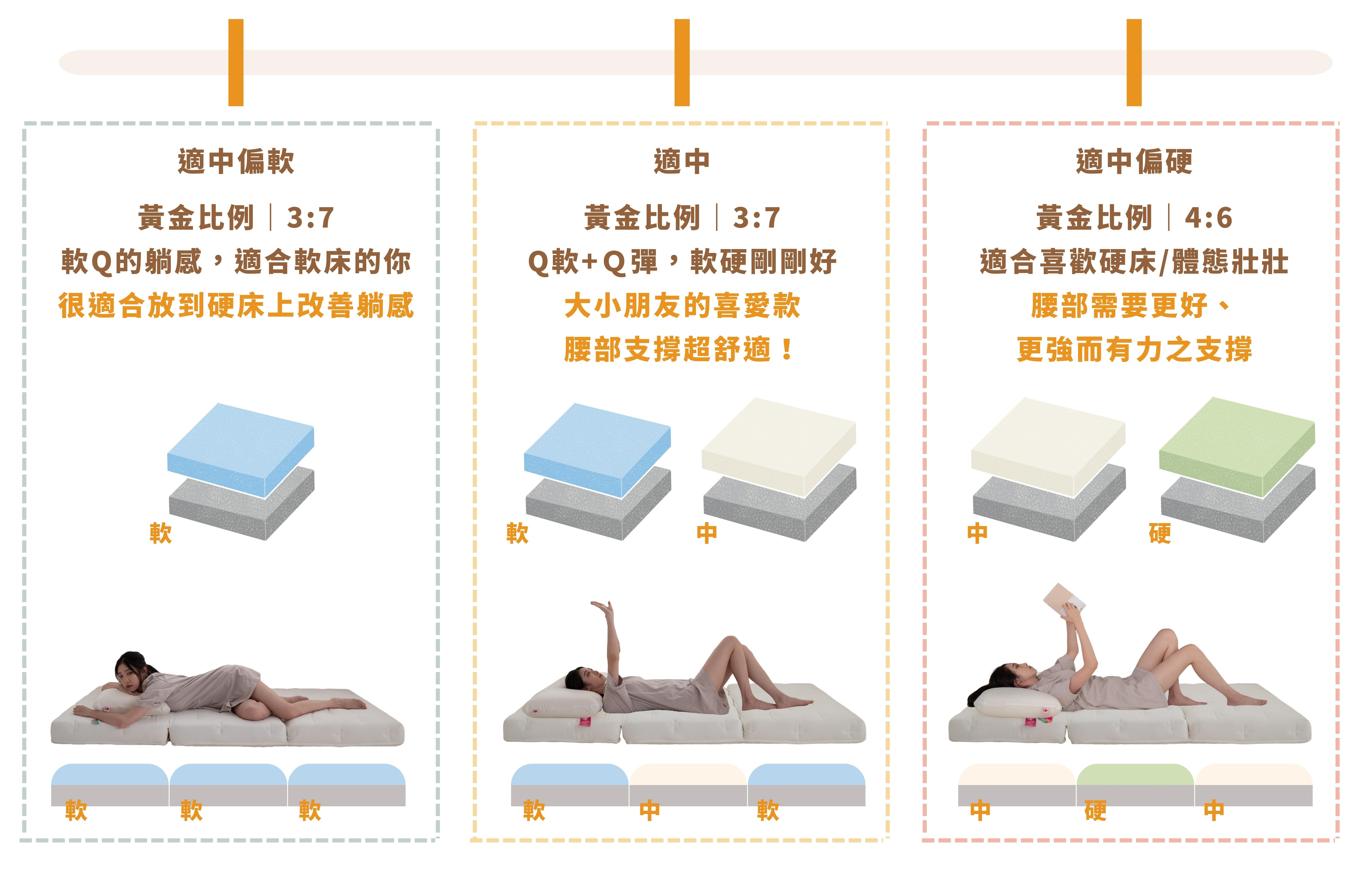 三款軟硬精心配製,不管睡軟睡硬,總有一頂適合你