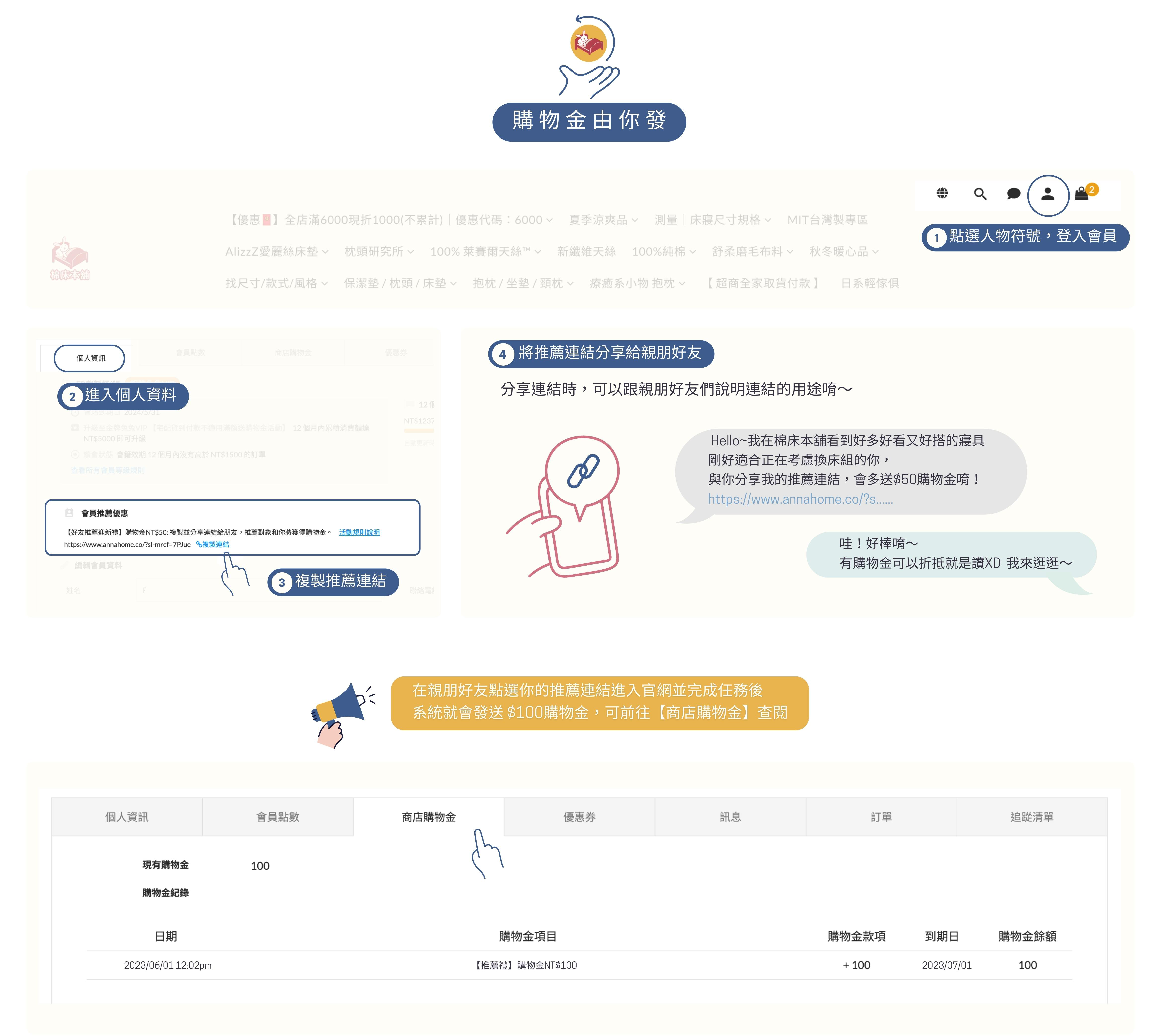 ※系統將於訂單完成配送後1~3工作天,自動發送$100購物金給推薦人