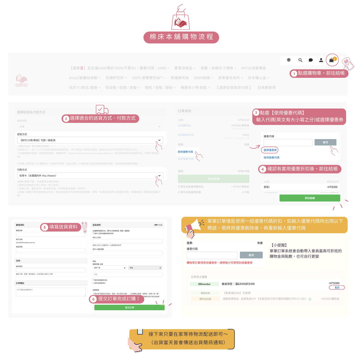 ※全店所提供之滿額折扣優惠皆不累計,以結帳頁面所顯示的折扣金額為準。