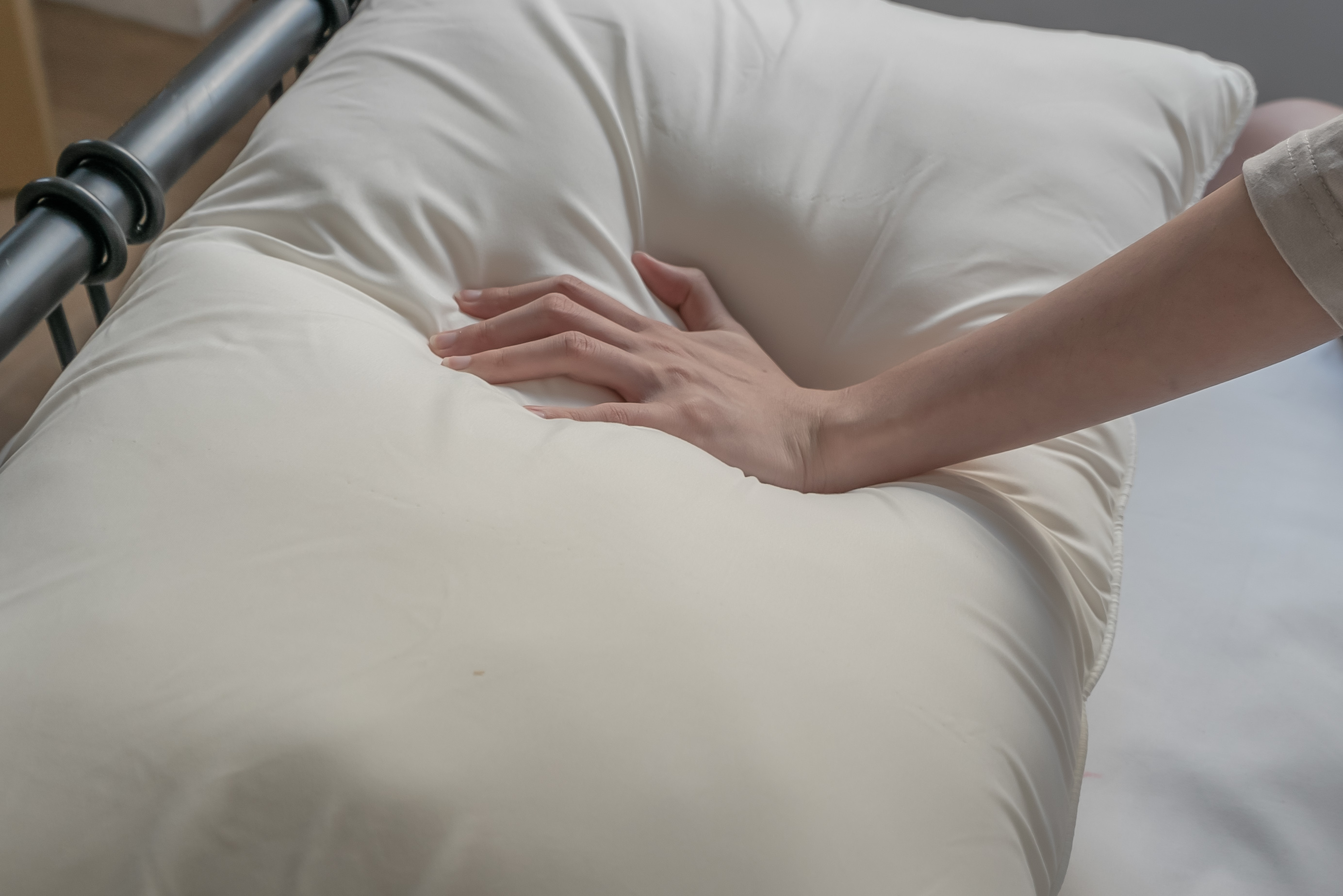 具有乳膠枕,羽絨枕,記憶枕多種枕頭特性的無憂枕,為本舖經歷多次打樣最終確認的獨家開發枕頭,結構為上下兩片片狀海綿夾內部適中比例碎泡綿,舒適的躺感讓人流連忘返,一睡再睡