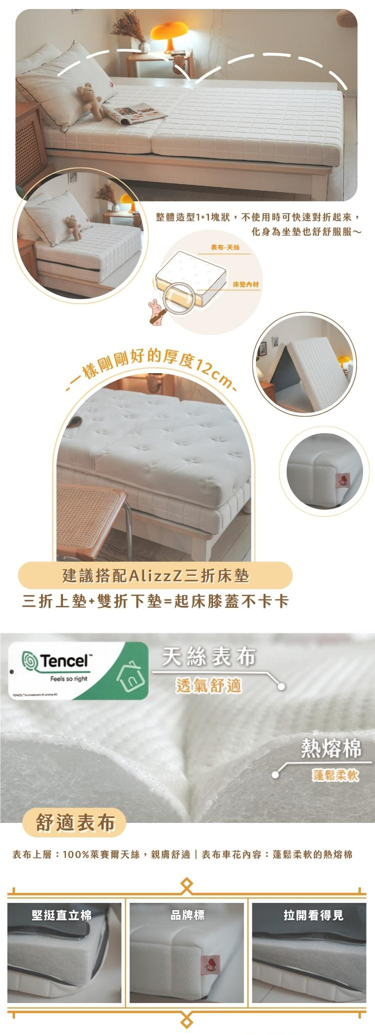內材為扎實的直立棉,可當alizzz床墊的增高墊,也可以直接睡,躺感類似塌塌米