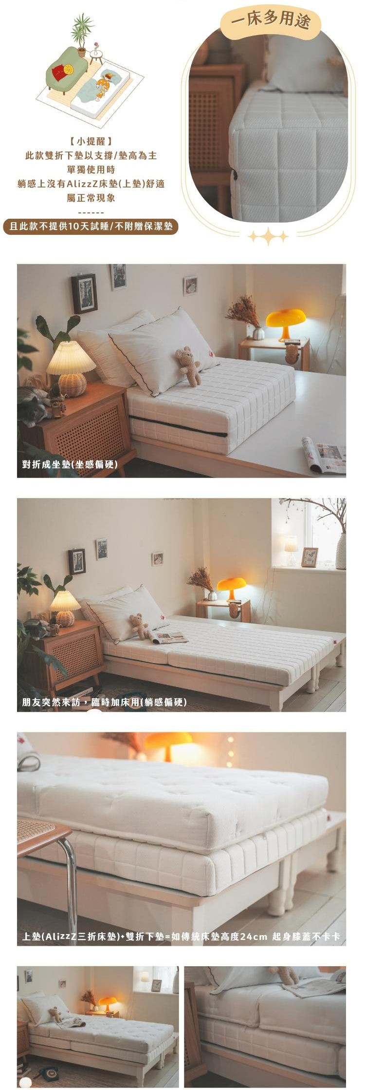 放在原本AlizzZ床墊下方後,就能像傳統床墊一樣高度擁有24cm~